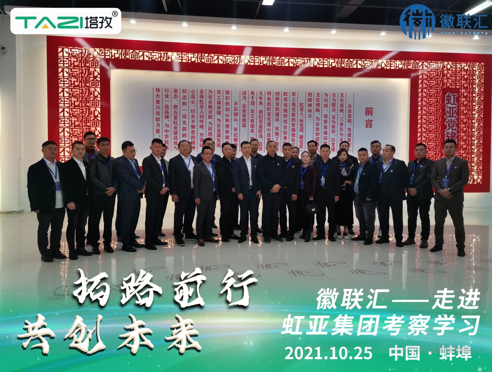伴隨著秋高氣爽,徽聯(lián)匯企業(yè)家10月24日到達(dá)蚌埠,雙城互動,名企取經(jīng)(蚌埠站)正式拉開帷幕,安徽塔孜信息技術(shù)有限公司CEO盧義春先生受邀全程參與本次研學(xué)活動,24號徽聯(lián)匯走進(jìn)安徽財(cái)經(jīng)大學(xué)研學(xué)、25號研學(xué)虹亞集團(tuán)、豐原集團(tuán)。中午參訪安徽塔孜信息技術(shù)有限公司。