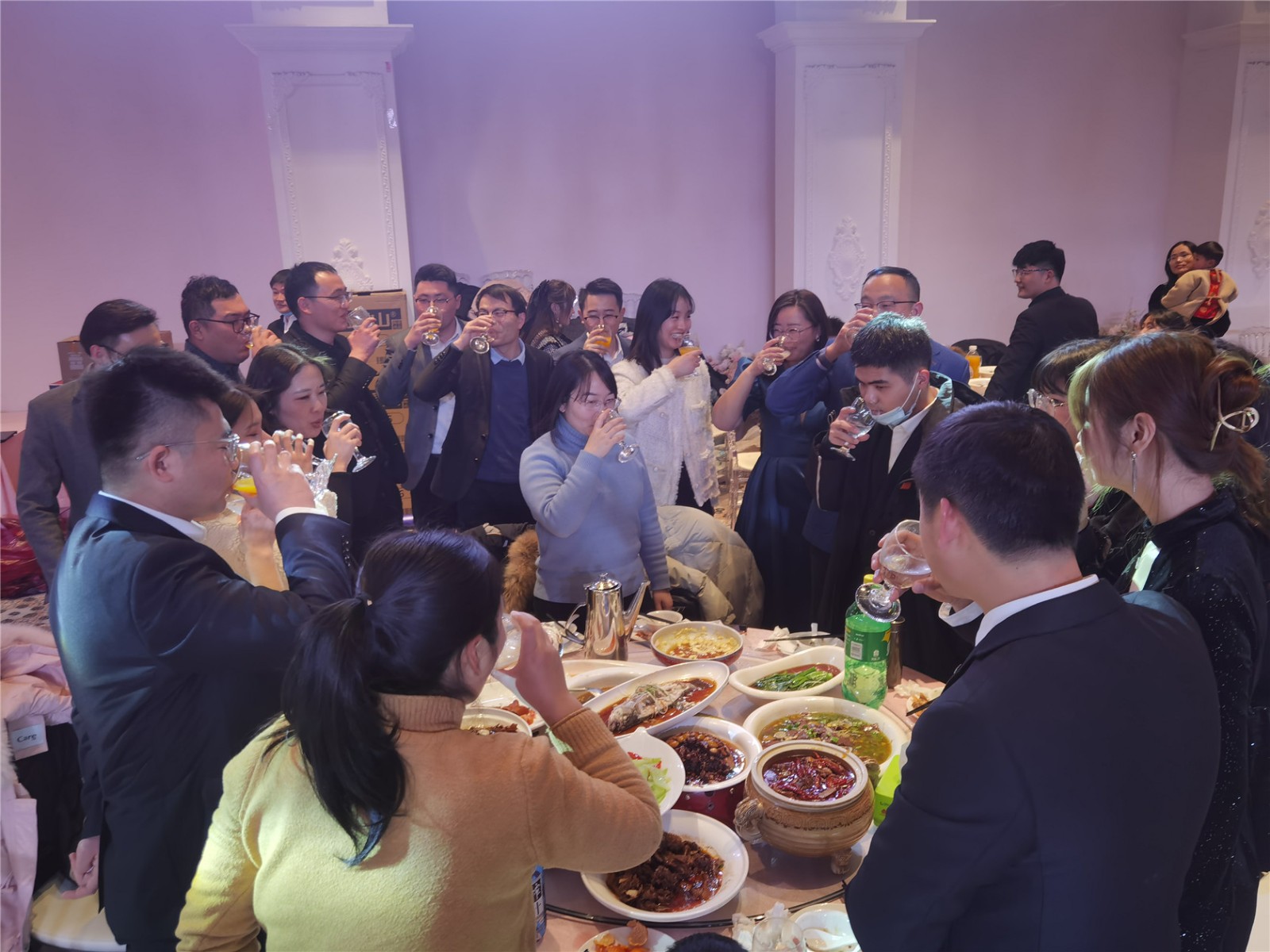 新年晚宴上全體員工為新的一年舉杯同慶,共同祝愿塔孜的明天會更好。